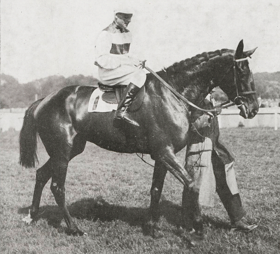 The picture of Borrow is one of the real jewels you sometimes get to find - in this case, in an old French magazine. As his sire Hamburg suggests, Borrow was an American horse, bred and owned by Harry Payne Whitney. The photo was taken in 1910, when Borrow was a two-year-old, and further examination revealed that he was a hell of a racehorse in England, winning the Middle Park Stakes - and the top English race sure had the same reputation as it does today. Even more interestingly, Borrow also dead-heated for the minor Hopeful Stakes - and the co-winner was Sunstar, the future Two Thousand Guineas and the Epsom Derby winner!
